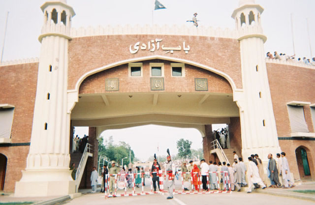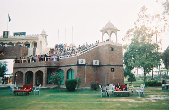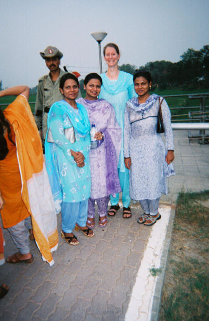 | On the Indian-Pakistan border with the lovely and outspoken Salman sisters, Aneela, Fazia, and Shazia. They are dressed in beautiful fabrics - we felt very dowdy in the clothes chosen by our hostess's husband. | ![]() |