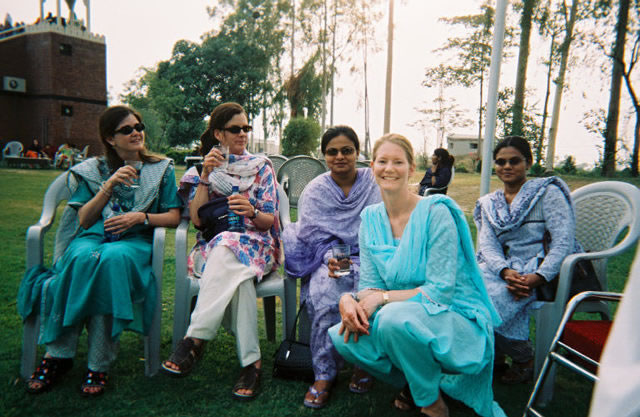 Ruth, Caroline, Fazia, myself, Shazia. Fazia is a government official, which is quite an accomplishment as she is a woman and a Christian. Most Christians have the most menial jobs, like street cleaning. Through her connections we were able to rest on the lawn before the ceremony, where we were served tea and cookies. |
