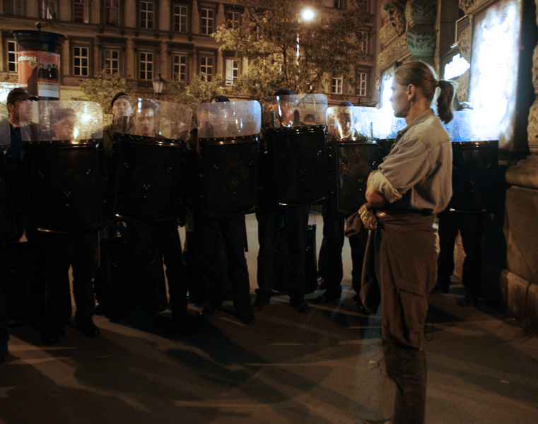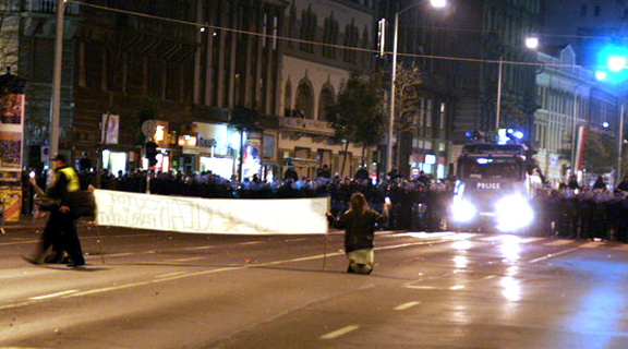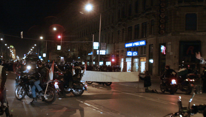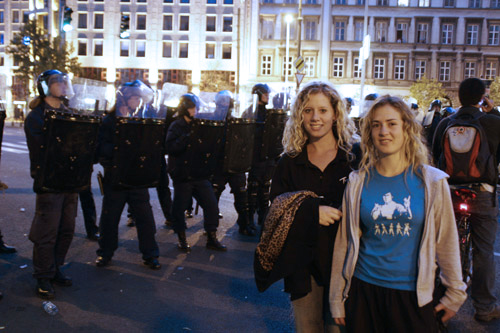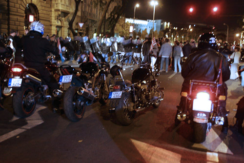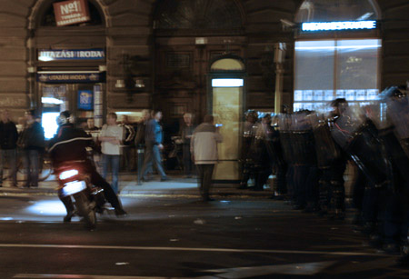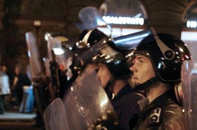Bikers challenged the line - That's usually when the tear gas started. |